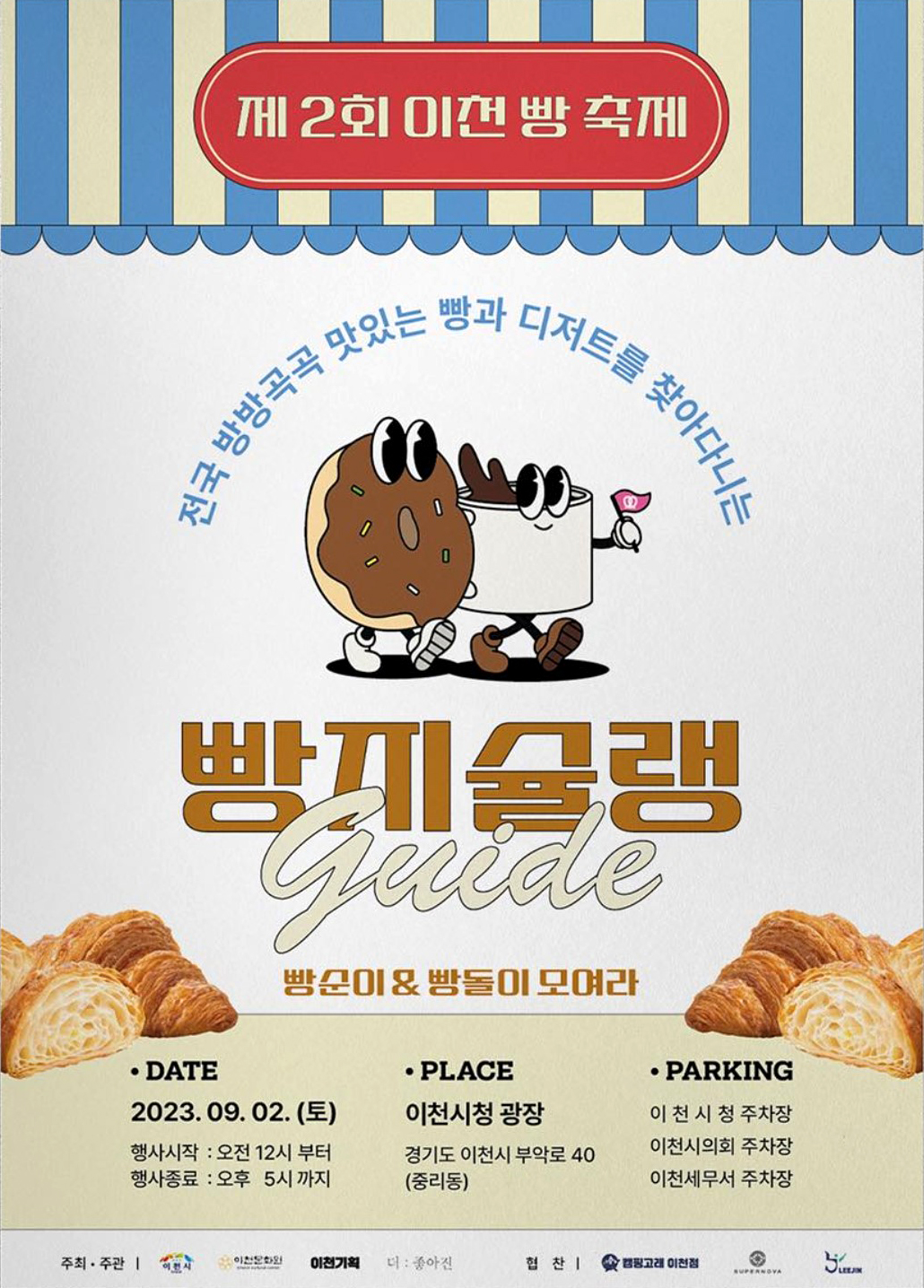 이천 대표 명품 빵부터 동네 빵까지 다채로운 빵 문화를 선보이는 ‘제2회 이천 빵지순례 빵지슐랭가이드’가 9월 2일 12시부터 17시까지 이천시청 광장일대에서 열린다.