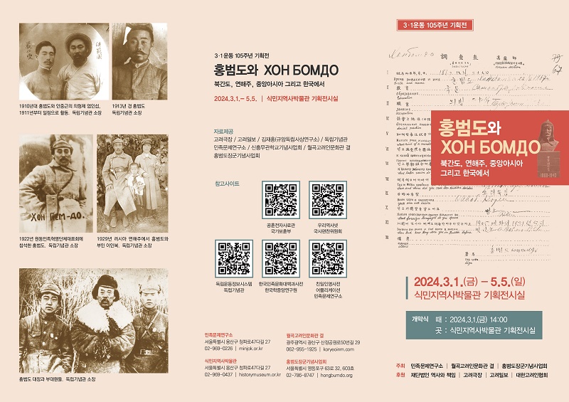 홍범도 장군의 삶과 독립운동을 재조명한 전시 ‘홍범도와 ХОН БОМДО’특별전이 5월 5일까지 식민지역사박물관에서 열린다.