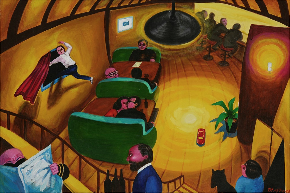 그의 그림은 자질구레한 사건 사고에서부터 전쟁과 폭력, 파괴와 죽음, 갈등과 모순, 자본과 성(性) 등 우리 사회를 들썩이게 했던 화젯거리들로 가득하다. 미처 주위를 둘러보기도 전에 다른 이야기가 펼쳐지며 수많은 상황들이 블록처럼 얽혀 있다. 또 시공과 구조를 넘나드는 일상들이 파노라마처럼 이어지면서 하나로 짜깁기돼 비극은 희화되고 극대화된다.