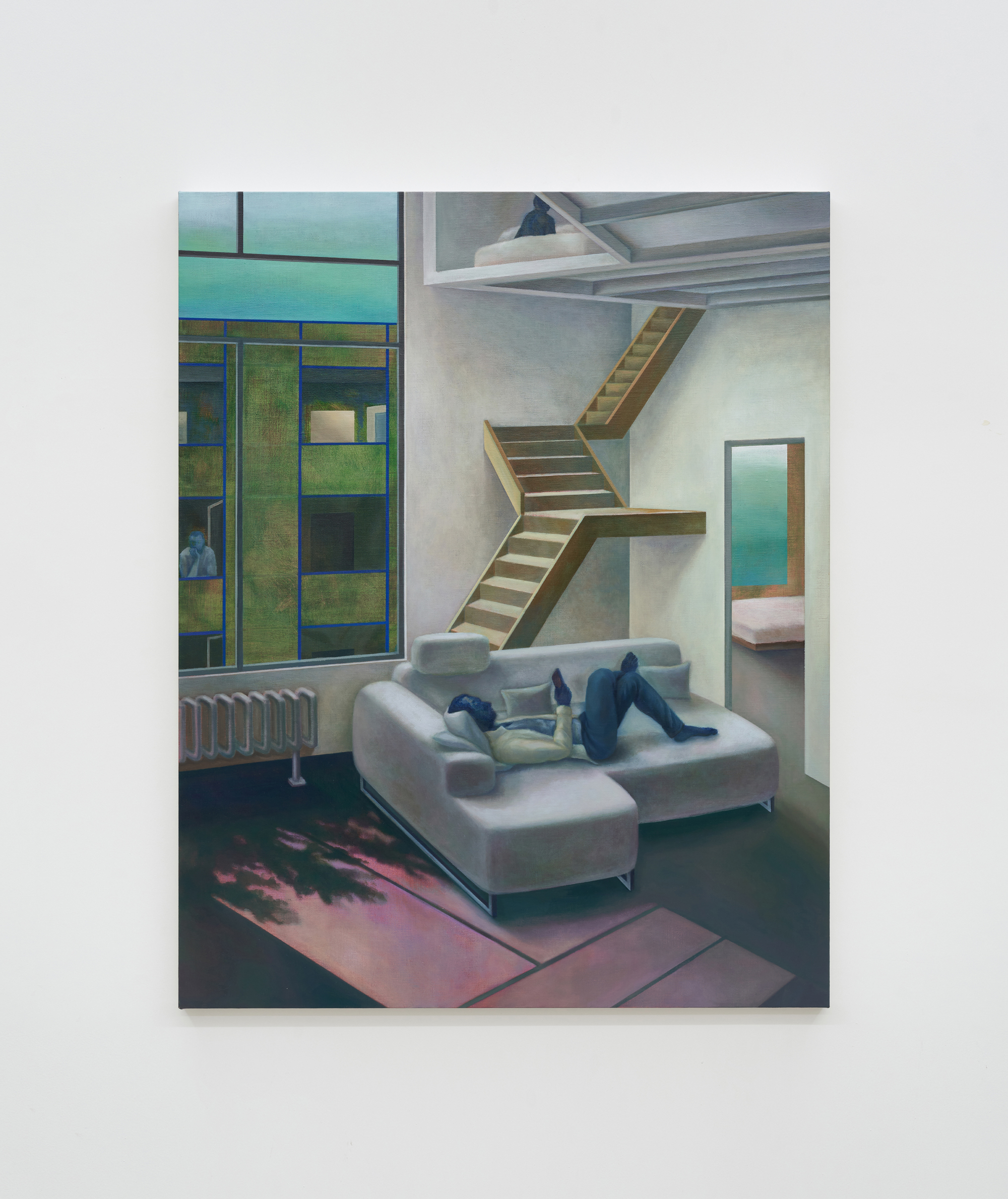 최유정 작가는 정제된 붓질과 간결한 구도로 가상과 현실 사이의 내부공간을 담아낸다. 그 공간에 거주하는 익명의 인물과 그가 바라보는 창밖의 풍경으로 현대사회의 주거 생활과 이러한 환경에 의해 만들어지는 개인성을 탐구한다.