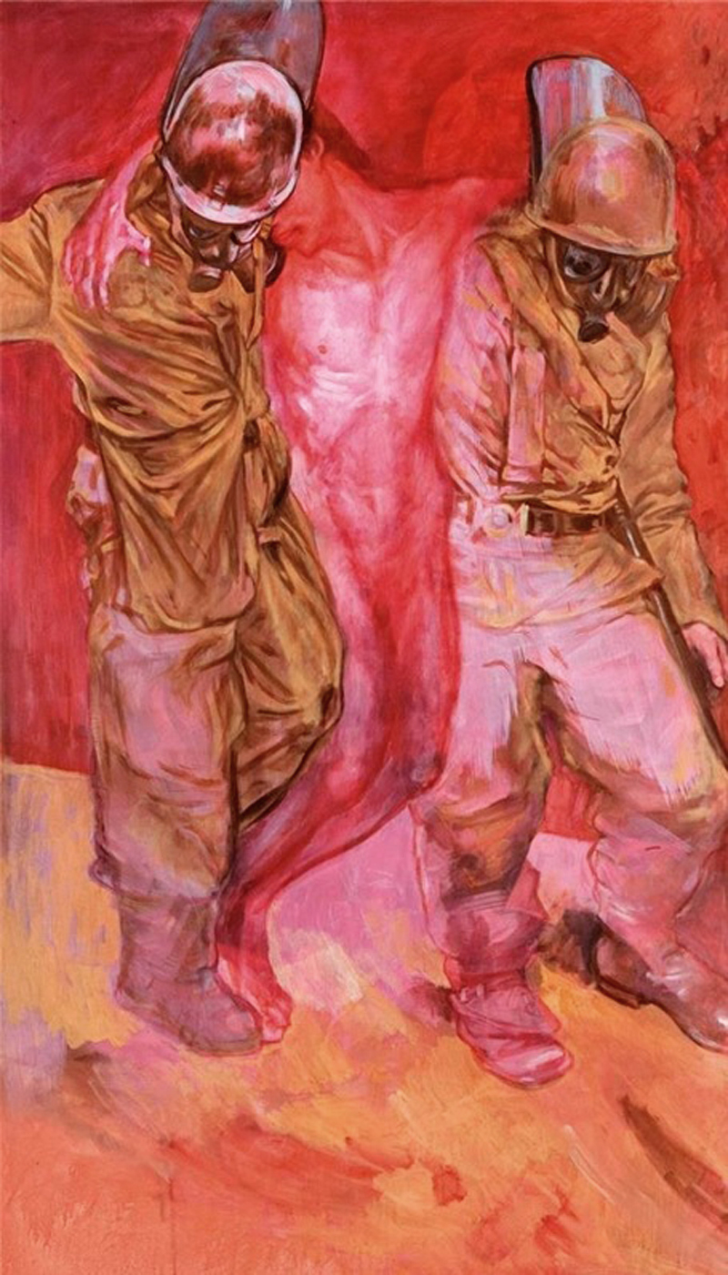 최 작가의 에스키스는 향후 어떤 내용의 작품이 발표될지 예측 가능하도록 했다. 외세의 영향에 좌지우지되며 정체성과 자존감을 잃어가는 한국 청년이나 우리 사회에 일종의 각성을 촉구하는 그림일 것이라는 생각이 들었다. 아니었다.