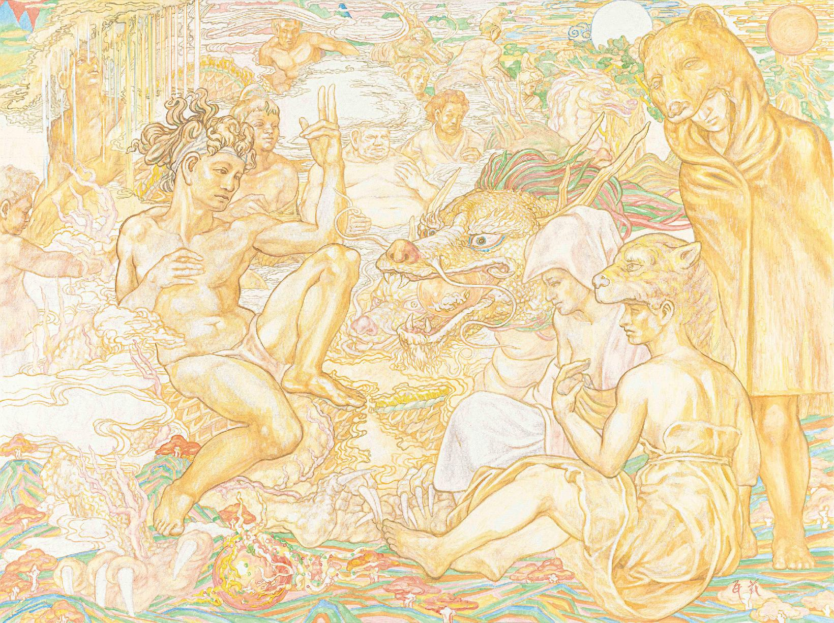 화풍은 그동안 봐왔던 것과 많이 달랐다. ‘신과 인간 사이의 소통을 회화적으로 가장 밀접하게 풀어냈다’는 작가의 말처럼 풍성한 구상을 부드럽고 엷은 세필로 윤곽선을 표현해 아련한 느낌을 자아냈다. 내용은 민화나 불화, 힌두 미술, 풍속화, 르네상스 미술 등을 혼합해 빚어냈다.