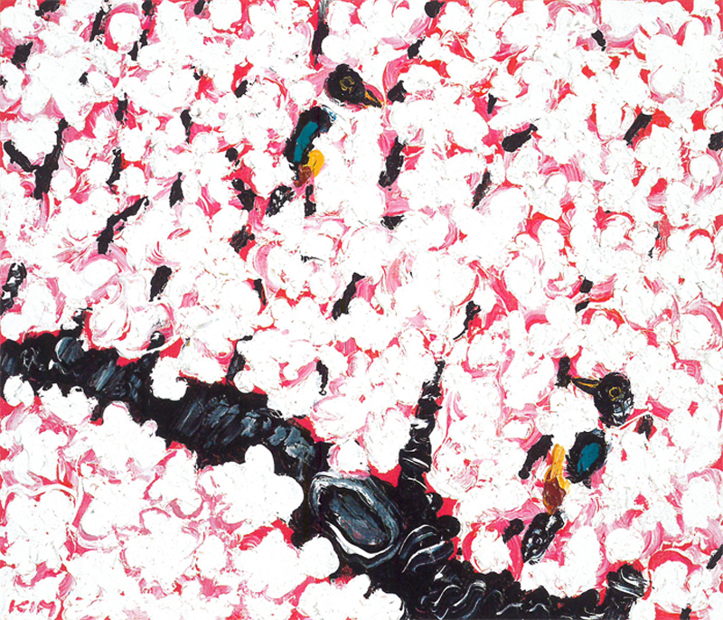 김종학 작가는 나약하고 여성적인 꽃도 선이 굵은 남성적 풍경으로 변모시킨다. 속도감 넘치고 대담한 원색의 붓질로 자연의 강렬한 리얼리티를 포착한다.