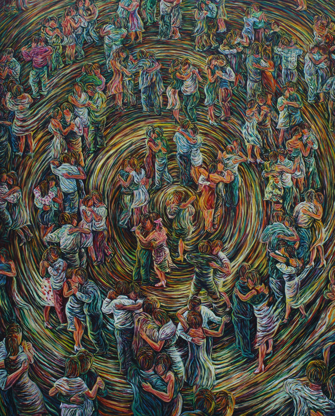 그의 작품은 가슴에 스크래치를 낸다. 미친 듯이 앞을 다투며 뛰어가는 도시문명과 그 속에 휩싸여 살아가는 현대인들의 슬픈 잔상이 보인다. 눈에 보이지 않는 뜨거운 빛과 먼지가 띠를 만들어 무서운 속도로 질주하는 것 같은 느낌. 그래서 그의 작품은 보는 것 하나만으로도 마음이 바쁘고 분주하다.