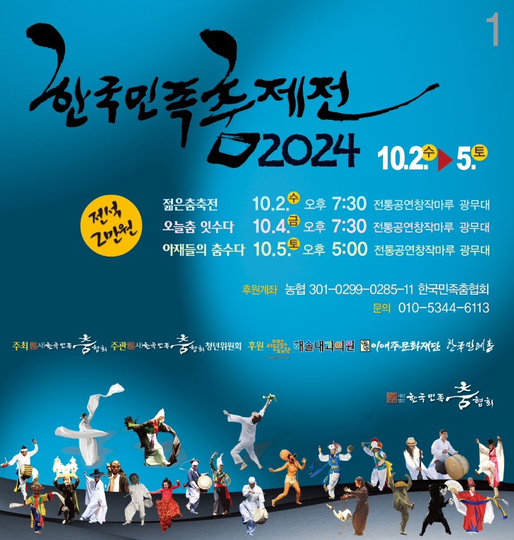 전통문화를 계승하고 문화예술인들의 소통과 화합을 도모하는 한국민족춤제전이 10월 2일부터 5일까지 전통공연창작마루 광무대에서 열린다.