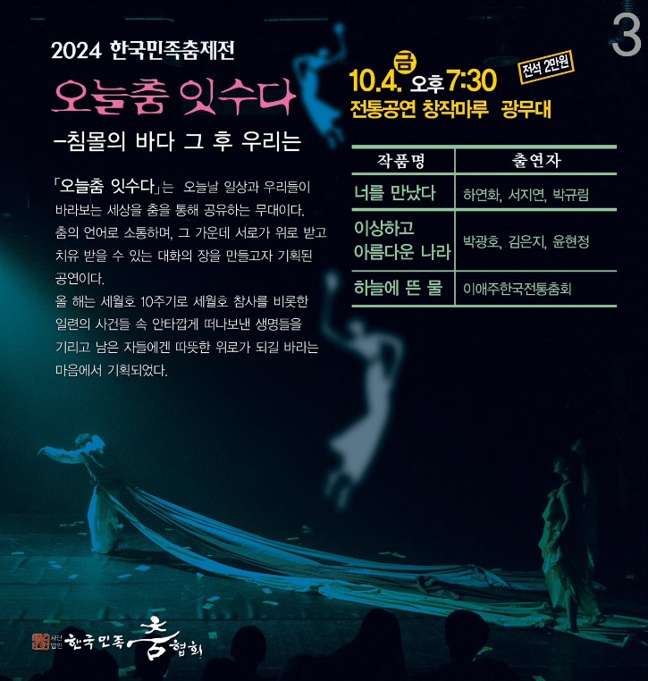 이번 공연을 주최하는 (사)한국민족춤협회는 우리 시대의 아픔인 세월호의 아픔을 표현하는 춤꾼들의 모임으로부터 시작해 전국에서 활발한 공연활동을 하고 있는 다양한 장르의 예술가들이 모여 2016년 결성한 전문예술 단체다.