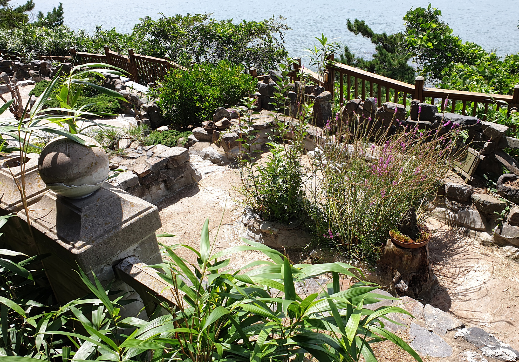죽도 한가운데에는 상화원이 있다. 상화원(尙和園)은 ‘조화를 숭상하는 정원’이라는 뜻. 이곳은 정녕 휴식의 공간이자 진정한 만남의 장소였다. 자연환경과 뒤섞인 건축물과 조경, 부대시설이 너무나도 조화로워 하나의 예술작품 같다는 생각이 들게 했다. 나무 그늘을 만드는 녹음수 밑에 조성된 의자와 돌덩이들, 바다가 내려다보이는 전망 쉼터와 매점, 보행 길 중심으로 구성된 정원과 생태 공간 모두 하나 같이 서로 잘 어울렸다.