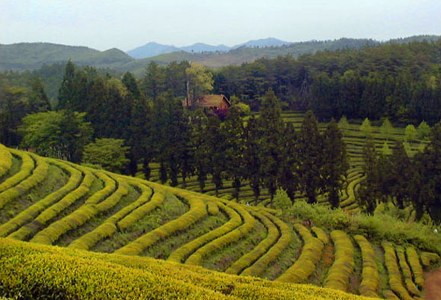 녹차밭은 꽃보다 아름다웠다. 청풍(淸風)이 길을 안내하는 청자 빛 하늘 아래로는 하얀 깃털 구름이 흐르고, 그 밑으로는 오종종하게 펼쳐진 능선마다 흐르는 냥 마는 양 연둣빛 물결이 연방 넘실거리며 신천지를 연출했다. 정갈하고 아름답게 수 놓인 새색시 치마폭처럼 부드럽지만 아무렇게나 휘갈긴 명필의 붓놀림처럼 힘이 넘쳤던 녹차밭은 무엇과도 비교할 수 없을 정도로 깊은 사색을 불렀다.