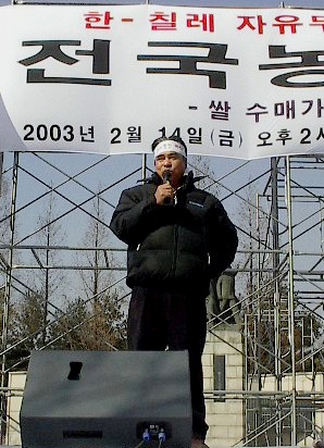 "한미 FTA는 국가와 민족의 운명이 걸린 문제라고 의미를 부여하고 싶습니다. 정부는 한미 FTA 반대를 '쇄국', 혹은 '나라를 망치는 짓'이라고 서슴없이 말하고 있지만, 새빨간 거짓말이죠. 경제학자들, 하물며 청와대 비서진들조차 그렇게 생각하고 있지 않잖아요. 노동자, 농민들도 그렇고요. 이러한 상황에도 한미 FTA를 추진하려고 하는 노무현 정부를 우리는 절대로 용납할 수 없습니다. 당장 한미 FTA는 중단되어야 합니다."