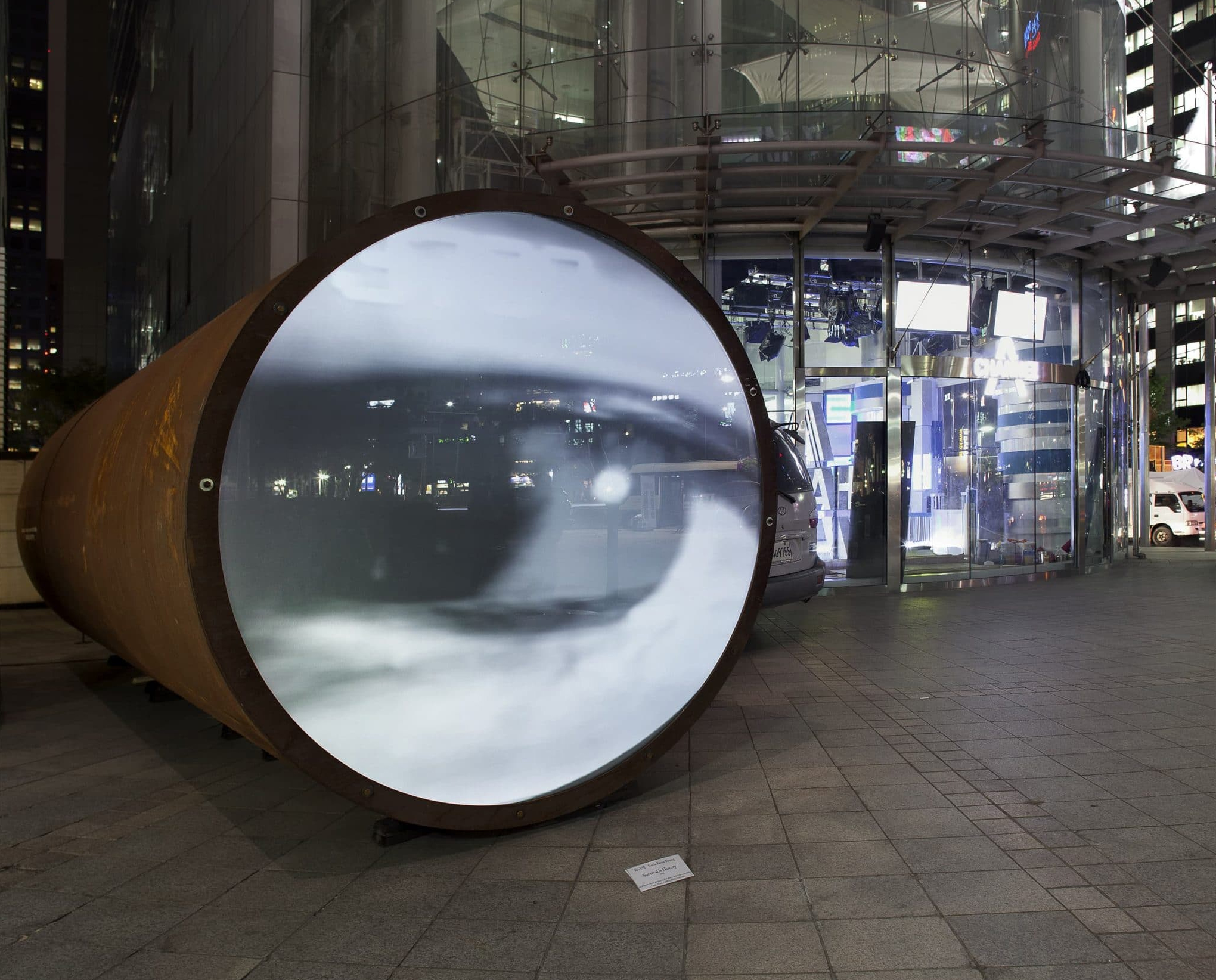 육근병 작가는 커다란 눈 하나가 깜박이는 작품으로 인간이 지닌 근원적인 문제인 삶과 죽음에 주목했다. 드로잉과 페인팅, 퍼포먼스, 오디오 비주얼 설치 등 다양한 장르를 넘나들며 인간과 사회를 성찰해왔다.