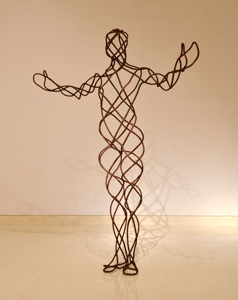 김 조각가는 대학 시절 보일러 수리, 건축공사현장 철근 가설 작업 등을 하면서 공부했다. 그때 철근구조물 설치 경험이 현재 그의 작업의 모티브가 됐다. 그는 선과 선 사이의 간격이 만들어내는 어른거림이나 철선의 구성을 연구했고, 다양한 패턴에 대한 연구를 거쳐 다이아몬드 패턴으로 이루어진 현재의 작품을 만들게 됐다. 가볍지만 견고한 작품이다.