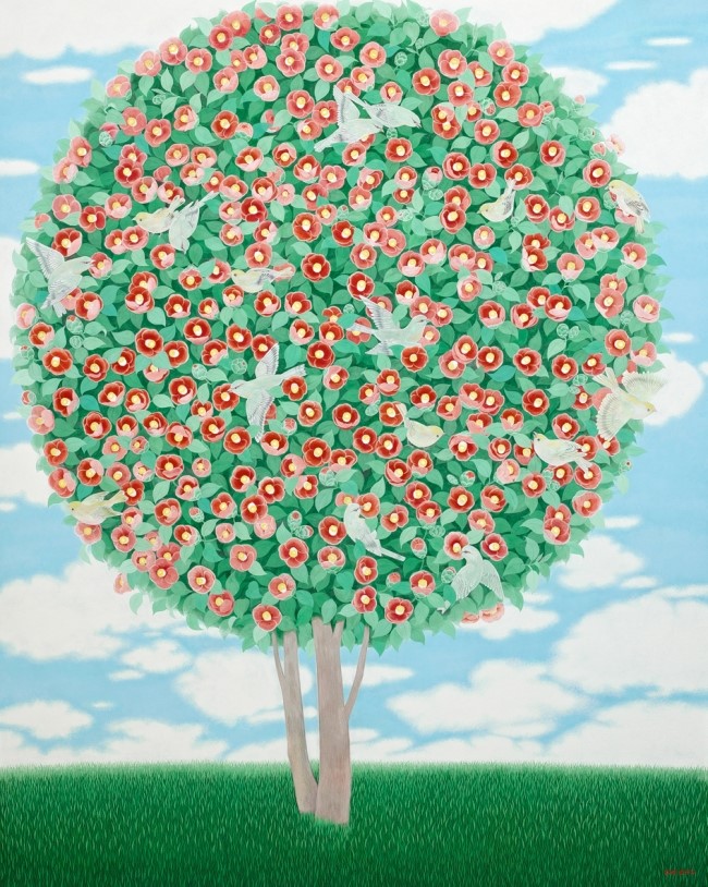 이 작가가 그린 꽃들을 보면 입이 딱 벌어진다. 그 붉은 꽃을 사진으로 소개하지 못해 아쉬울 따름이다. 화면 전체를 가득 채운 꽃, 흡사 동백꽃을 닮은 그 그림 앞에서 한참을 서 있을 수밖에 없었다. 이 작가는 저 꽃과 풀을 그려내기 위해서 얼마나 많은 시간을 투자했을까. 세필의 흔적 하나하나가 감동 그 자체다.