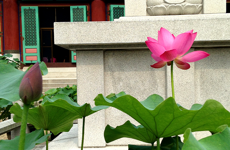 활짝 핀 연꽃이 청정한 빛을 뿜어낸다. 경외심을 일으키는 깨끗한 화색(花色)에 마음이 매료된다. 머릿속을 가득 채운 부정적인 카르마(업보)가 정화되는 기분이다. 돌로 만들어진 연꽃 모양의 물통을 타고 흘러내리는 약수를 한 식기 마시니 술과 고기, 온갖 인스턴트 음식으로 망가진 소화기관이 좋아 죽는다. 수양도 할 겸 봉원사에 얼마 동안 들어가 있었으면 좋겠다.