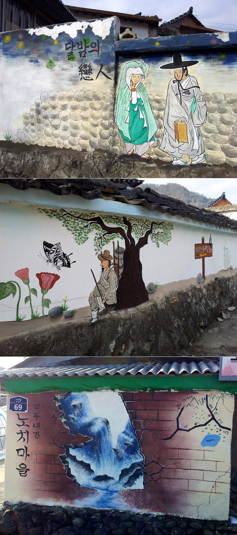 덕산저수지를 지나가면 행정마을이 나타난다. 이 마을 담벼락에는 예쁜 벽화들이 그려져 있어 눈을 즐겁게 한다. 이곳은 60여 그루의 서어나무가 서식하는 숲이 유명하다. 이 숲은 조림된 지 180년이 넘었다.