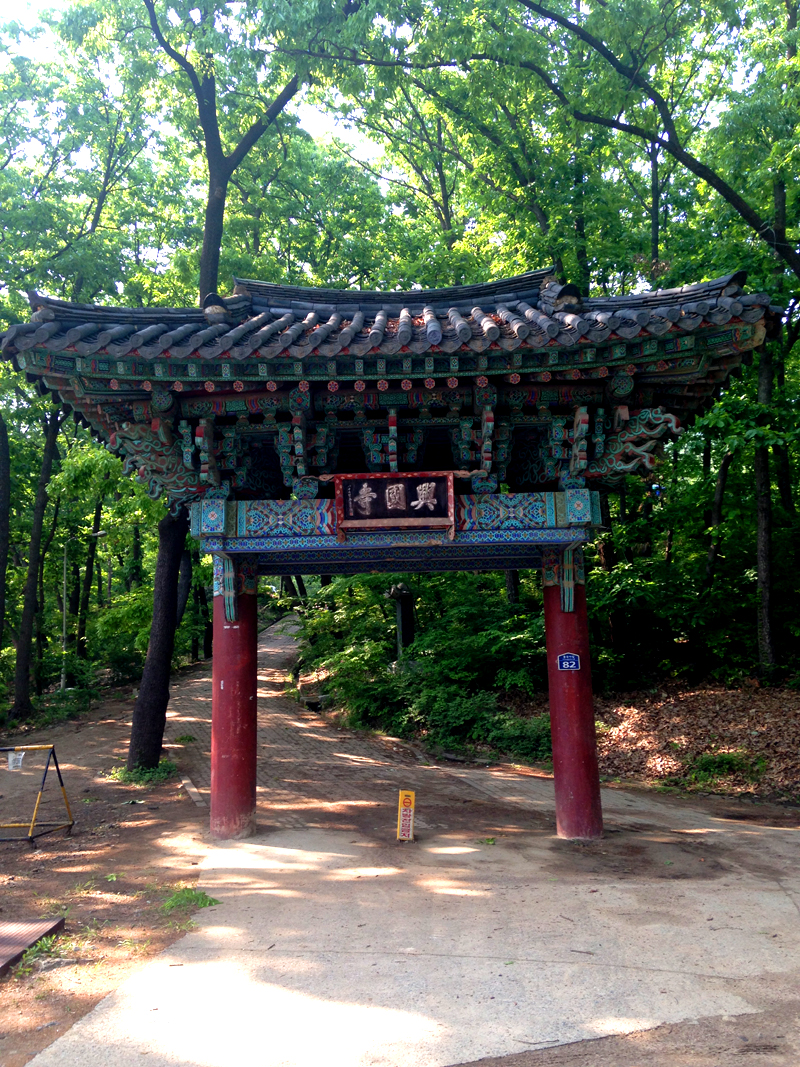 흥국사는 북한산 초입에서 가깝다. 구파발에서 버스를 타고 북한산국립공원 한 정거장 전에 내리면 건너편에 바로 흥국사로 올라가는 푯말이 나온다. 흥국사로 올라가는 길은 단조롭다. 가벼운 마음으로 마을과 고목 숲을 지나면 일주문이 나온다.