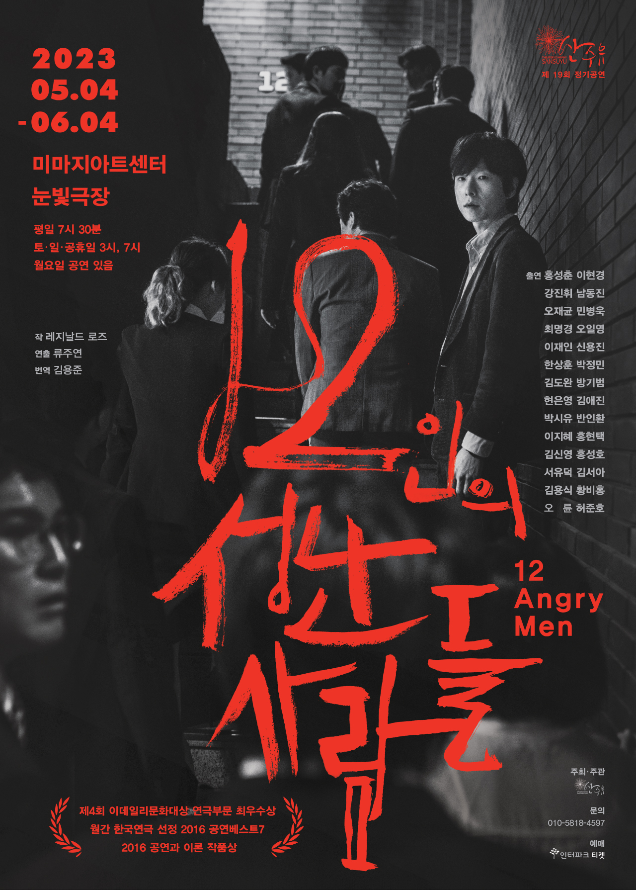극단 산수유의 19번째 정기공연 ‘12인의 성난 사람들’이 5월 4일부터 6월 4일까지 대학로 미마지아트센터 눈빛극장에서 열린다.