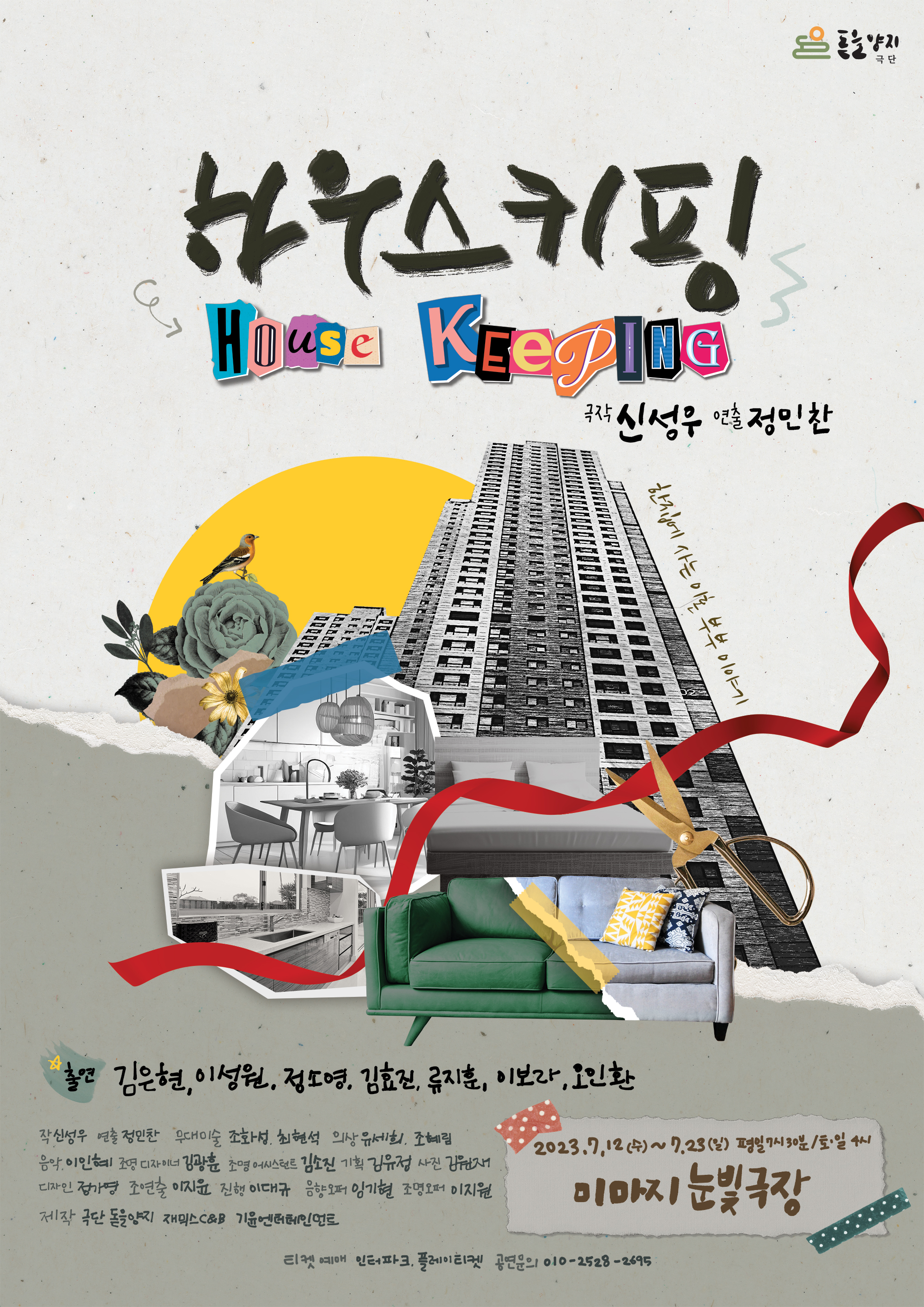 한 집에 사는 이혼부부의 이야기 ‘하우스 키핑’이 7월 12일부터 ~ 7월 23일까지 ‘미마지아트센터 눈빛극장’에서 열린다.