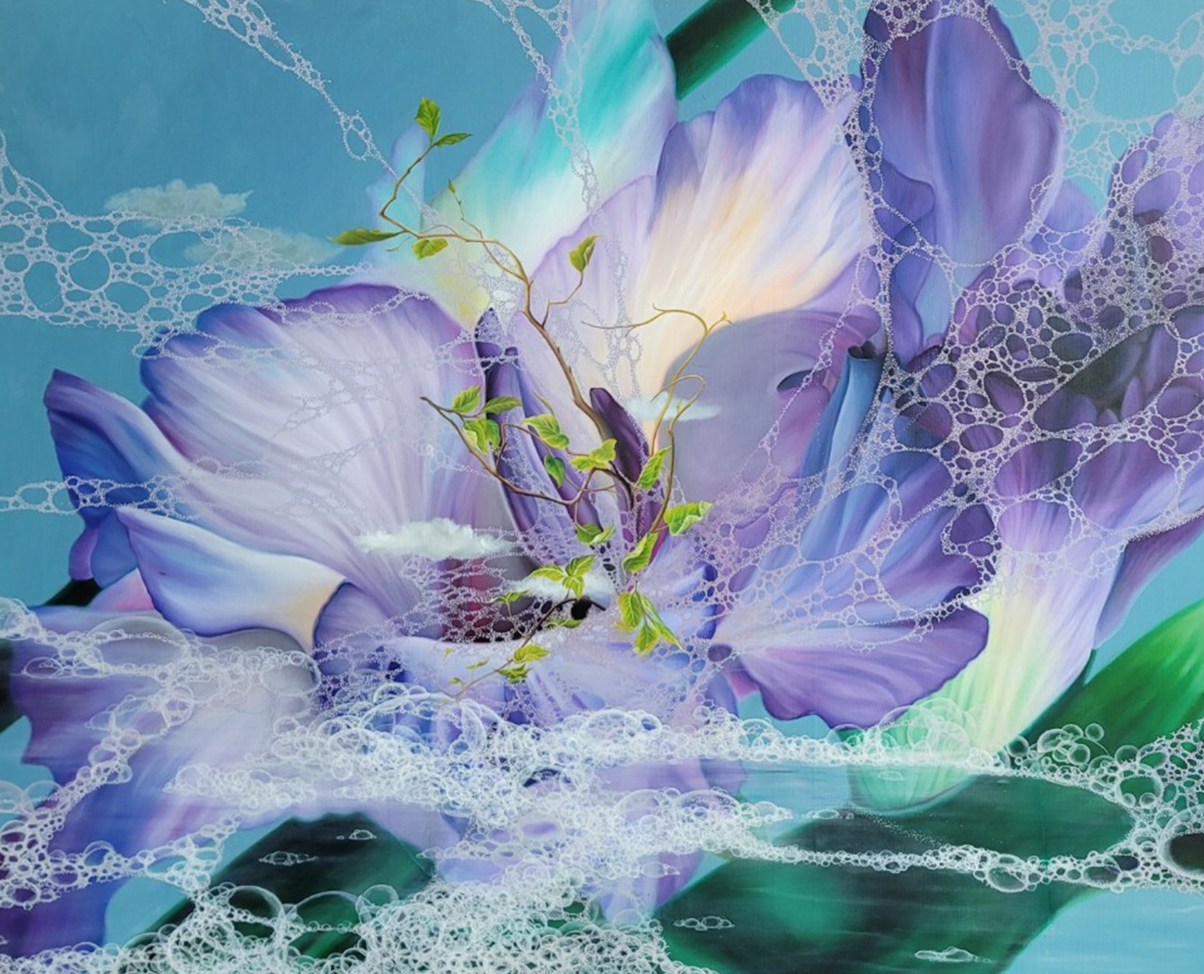 조로사 작가는 꽃이나 나무 같은 대상을 일상적인 공간이 아닌 하늘이나 바다와 같은 낯선 공간에 투명한 거품과 함께 연출해 부유하는 듯한 느낌을 준다. 생성과 소멸을 반복하는 생명력과 그것을 드러내는 에너지를 초현실적인 회화로 풀어낸다.