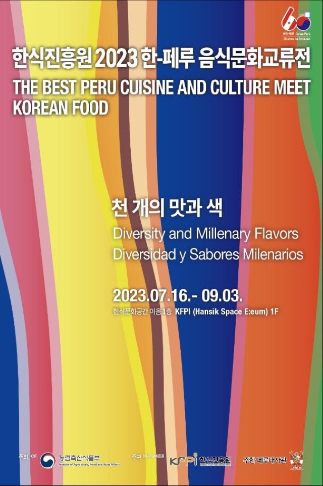 한국과 페루의 다채로운 음식문화를 소개하는 ‘2023 한-페루 음식문화교류전, 천 개의 맛과 색(Diversity and Millenary Flavors)’이 7월 16일부터 9월 3일까지 북촌 한식문화공간 ‘이음’ 1층 한식갤러리에서 열린다.